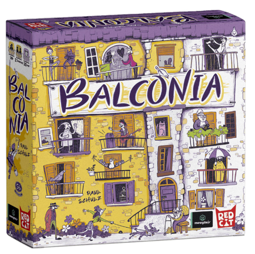 Balconia é um jogo estratégico leve para 2 jogadores a partir de 14 anos, que apresenta componentes 3D únicos. O objetivo do jogo é construir um prédio, equilibrando as necessidades e preferências dos condôminos, que possuem objetivos diferentes. A dinâmica do jogo ocorre de forma vertical, com a inserção de blocos na arquitetura do edifício.
