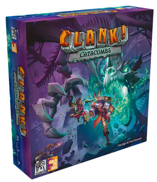 As catacumbas do dragão esquelético Umbrok Vessna são misteriosas e perigosas. Os portais transportam você pelas profundezas da masmorra. Os santuários do caminho oferecem vastas riquezas aos exploradores intrépidos. Os prisioneiros estão contando com você para libertá-los. Fantasmas, uma vez perturbados, podem assombrá-lo até a morte. Apesar de tudo isso, é hora de deixar o tabuleiro para trás com Clank! Catacumbas, uma aventura autônoma de construção de deck.